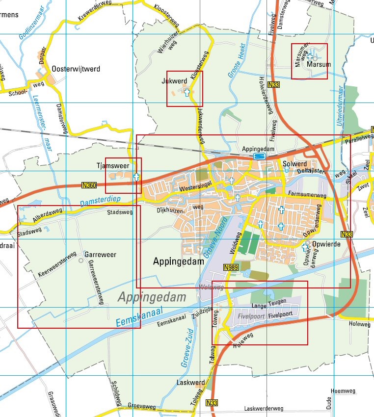 Appingedam is een stad, met stadsrechten sinds 1327. De gemeente telt diverse dorpen zoals Garreweer, Jukwerk, Laskwerd en Marsum. Vroeger waren Opwierde, Solwerd en Tjamsweer ook dorpen, maar deze zijn inmiddels “opgeslokt” door Appingedam.