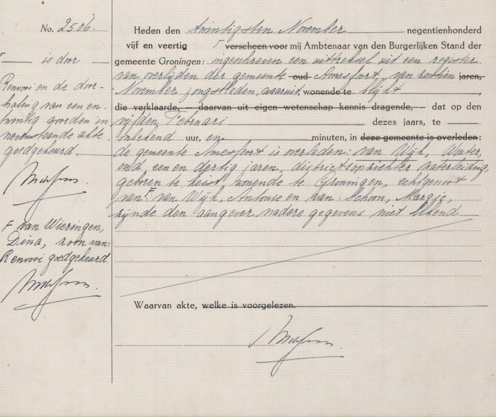 Op 20 juni 1940, net na de inval van de Duitsers, trouwt Wouter met Dina van Wieringen. Zij is 33 jaar ervoor geboren in Rotterdam.