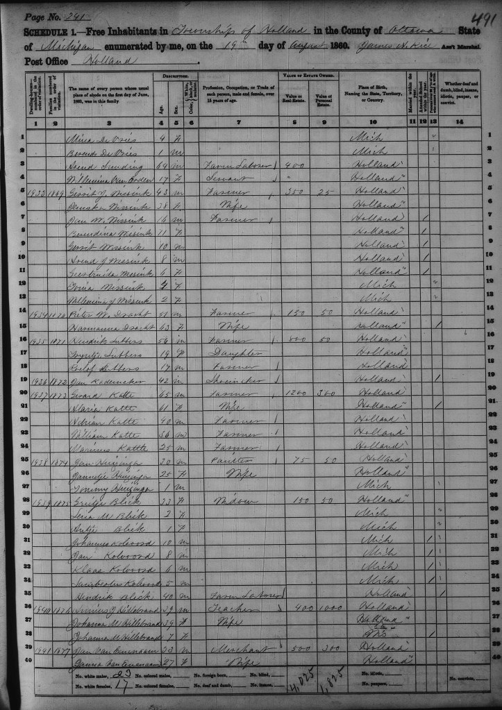 In de Census (soort volkstelling) van 1860 wordt het gezin van Anneus en Johanna vermeld met een dochter van 7 jaar, Johanna M op regel 36, 37 en 38. Johanna jr is 7 jaar, dus circa 1853 geboren.