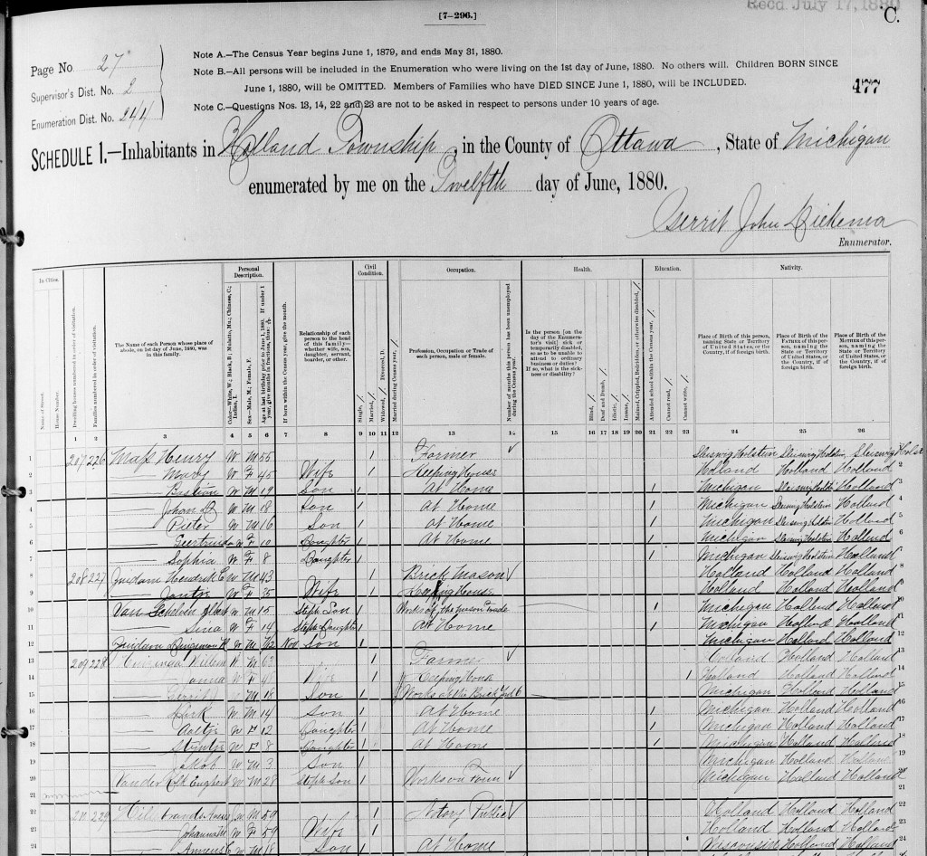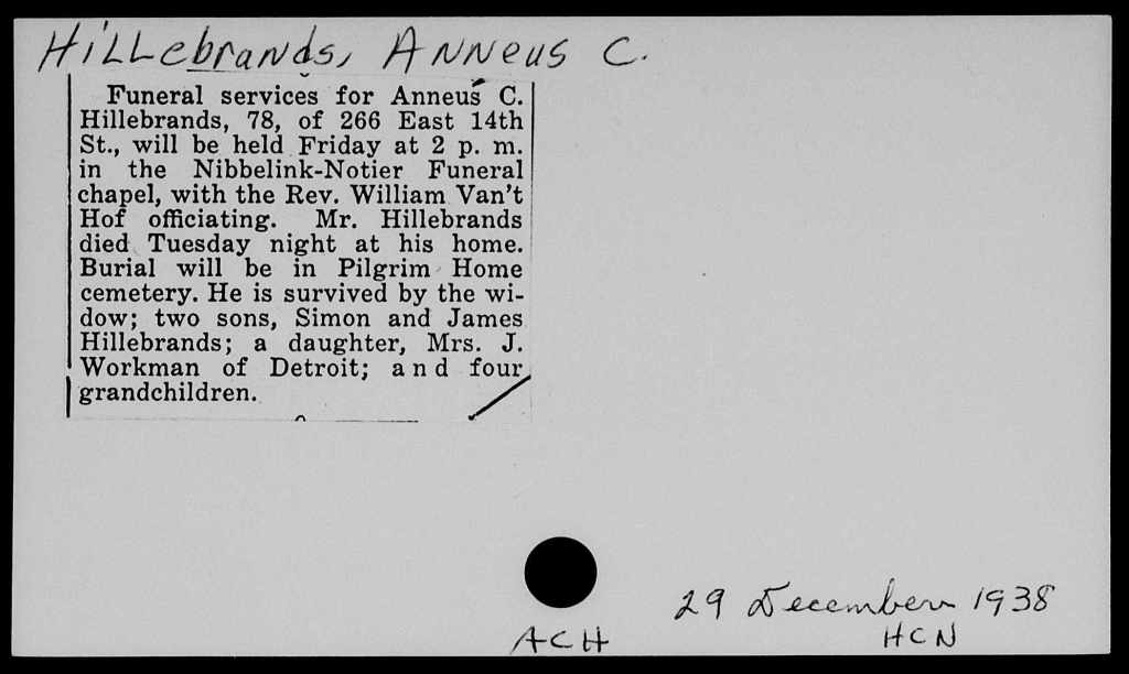 In 1880 werd vermeld in de Census dat het gezin bestond uit Anneas, Johanna en zoon Anneus C, toen 18 jaar oud. Hij zal dus geboren zijn rond 1862.
