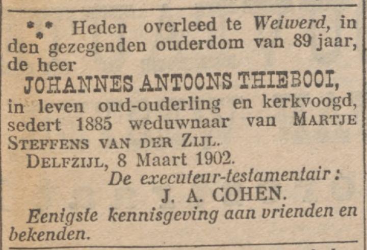 Hiermee stierf de naam Tiebooi, in welke variant dan ook, uit in de provincie Groningen. Bij mij is niet bekend wat de betekenis van deze familienaam was.