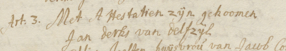 Art.3. Met Attestatien zijn gekomen Jan Derks van Delfzijl.