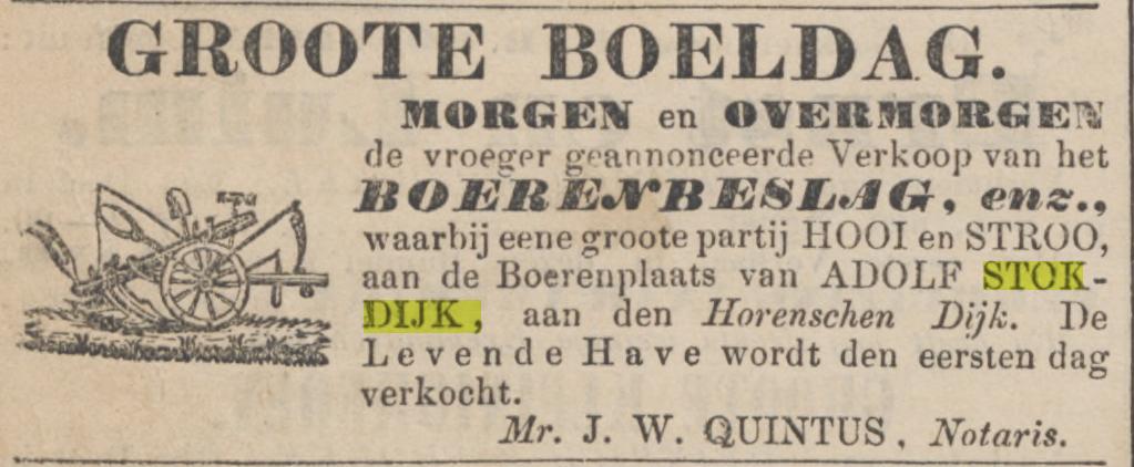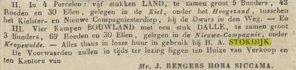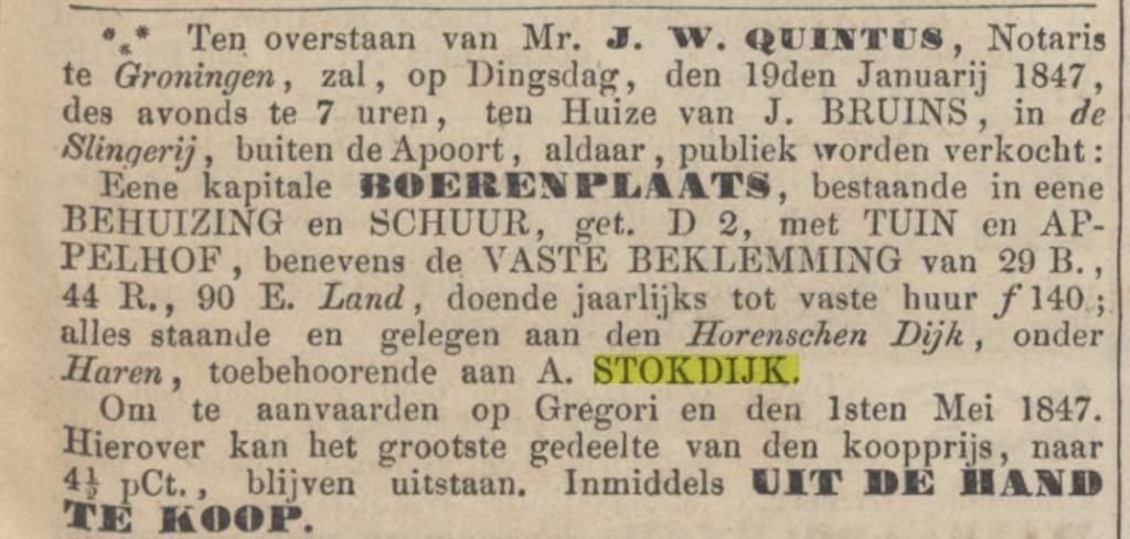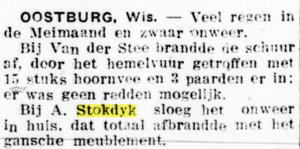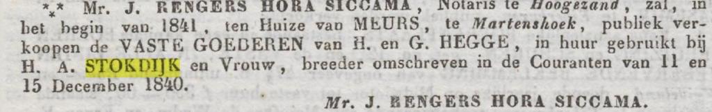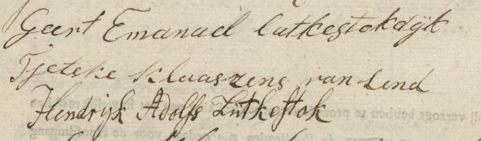 Geert Emanuel Lutke Stokdijk, oud 35 jaar, boerenknecht en wonende aan de Kalkwijk, gemeente Windeweer, trouwt met Tjitske Klasens van Lendt, 26 jaar, uit Sappemeer op 1 juni 1816. Als Geerts ouders worden Adolf Lutke Stokdijk en Anna Elizabeth Snithkamp genoemd, vader overleden, moeder woonde in Ladbergen in het Graafschap Tekelenburg.
