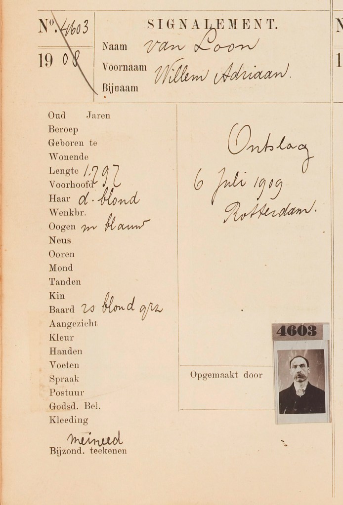 Ook Willem Adriaan wordt sigarenmaker. Hij trouwt met Antonetta Maria Molkenboer, van wie hij scheidde op 10 juni 1907. Ze hebben een voorkind, geboren op 1 oktober 1902 in Rotterdam, genaamd Ida Christina van Loon. Antonetta Maria trouwt daarna Hendrik Stephanus Ladage op 2 december 1908 in Rotterdam.