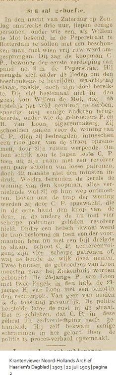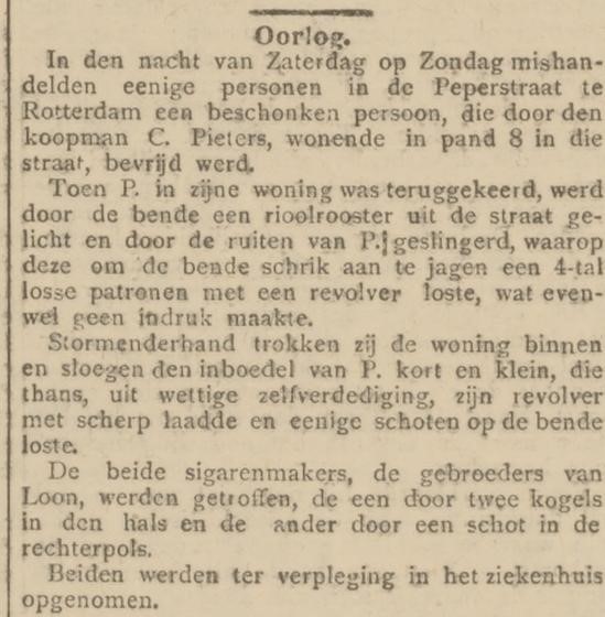 De kinderen Van Loon uit Rotterdam hebben een aantal keren het nieuws gehaald, bijvoorbeeld in juli 1903. Hierbij werd er gevochten door Willem de Mof en Pieter en Hendrik van Loon. Deze laatste twee raakten gewond door kogels: