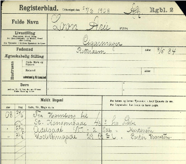 Marius is in 1916 vermeld in de census van Kopenhagen. Hier staat de naam van Rosa Itskowitz op hetzelfde adres. Is het zijn vrouw?