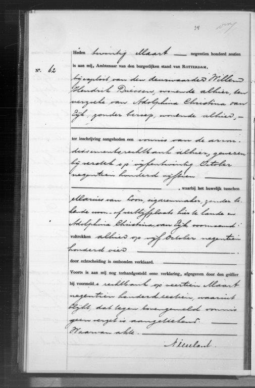 Op de laatste datum, 20 maart 1916, is de scheiding uitgesproken, nadat een oproep was geplaatst in de krant met een oproep voor Marius.