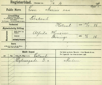 Blijkens het politieregister in Denemarken is Marius in april 1914 in Denemarken. Is hij hiernaar toe gegaan op aanraden van zijn broer Arie?