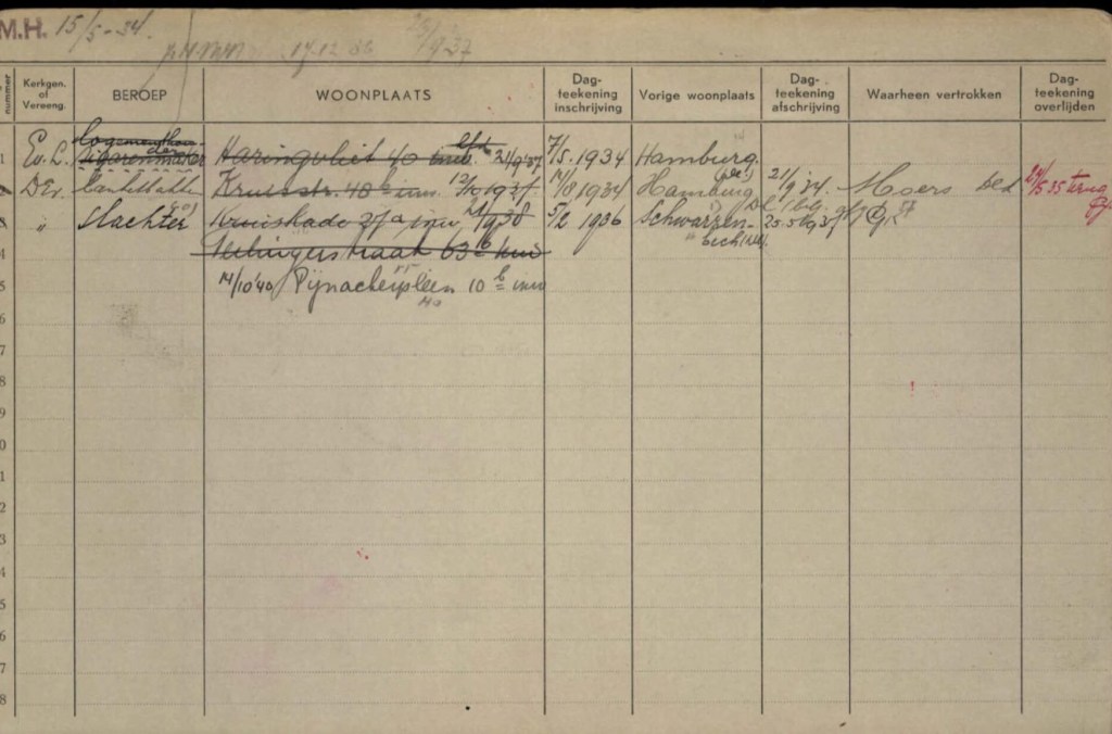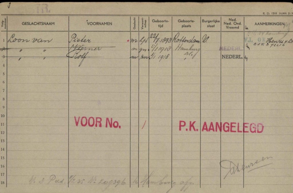 Wel is een gezinskaart gevonden, uit het Stadsarchief Rotterdam, waarop Pieter vermeld staat met twee zonen, t.w. Werner en Rolf, beiden geboren op 5 januari 1918 in Hamburg. Pieter kwam op 7 mei 1934 vanuit Hamburg naar Rotterdam, volgens deze kaart. Zoon Werner werd op 14 augustus 1934 ingeschreven (en op 21 september 1934 uitgeschreven naar Moers, Duitsland) en Rolf kwam op 5 februari 1936 vanuit Schwarzenbech, Duitsland, naar Rotterdam.