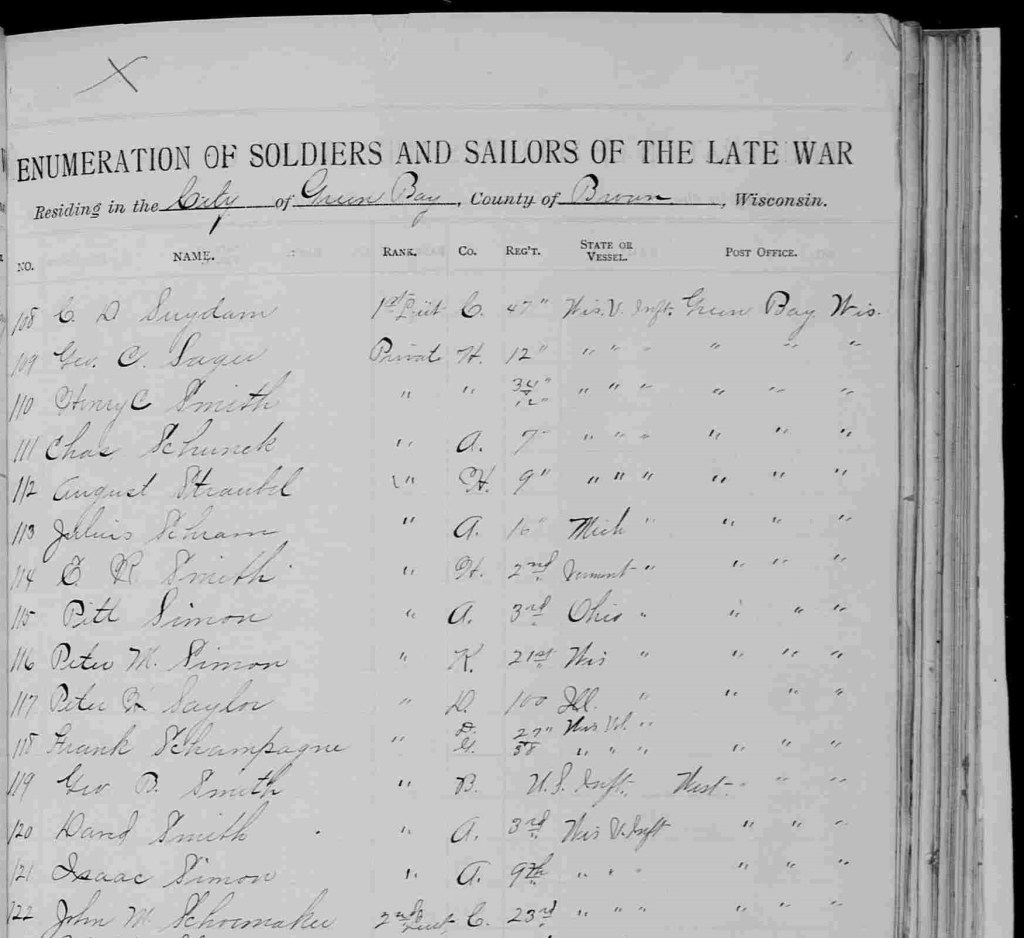 Marinus Johannes (John M) was 2e luitenant in het Wisconsin Volunteer Inft. in Green Bay City, Wisconsin.