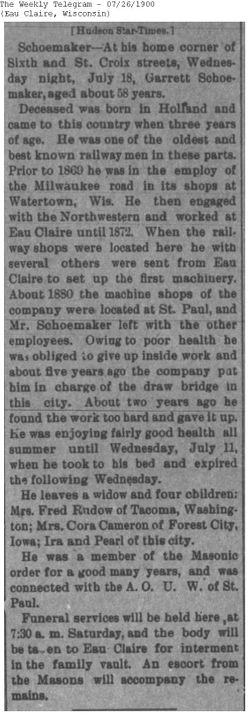 Arie, in Amerika bekend als Ira, overleed op 3 juni 1899 en werd begraven op Forest Hill Cemetery in Eau Claire, Wisconsin.