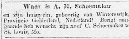 In de Sheboygan Nieuwsbode van 16 april 1850 is de volgende oproep te lezen: